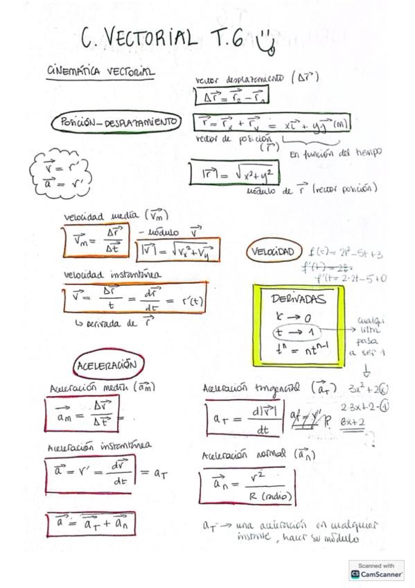 Formulario cinemática. Física y química 1º Bachillerato