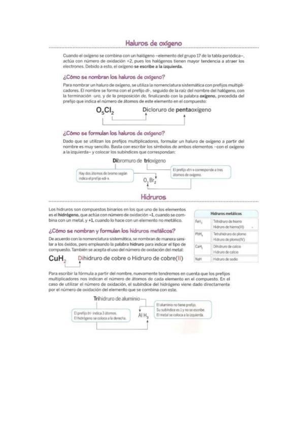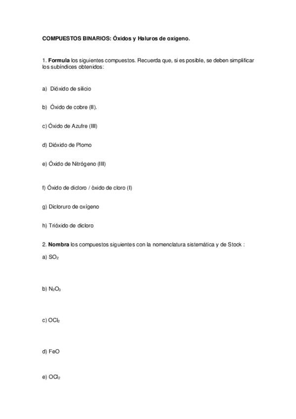 Ejercicios Química 2º ESO furmulación - ÓXIDOS E HIDRUROS