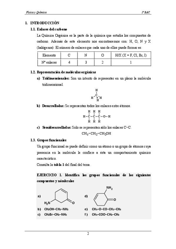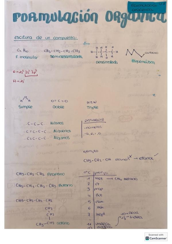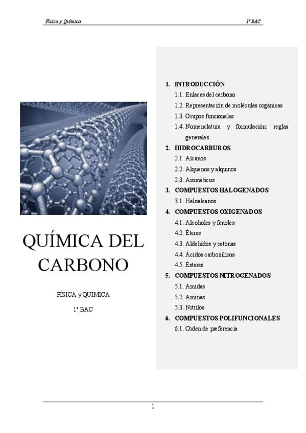 Resumen formulación orgánica, la química del carbono. Física y química 1º Bachillerato