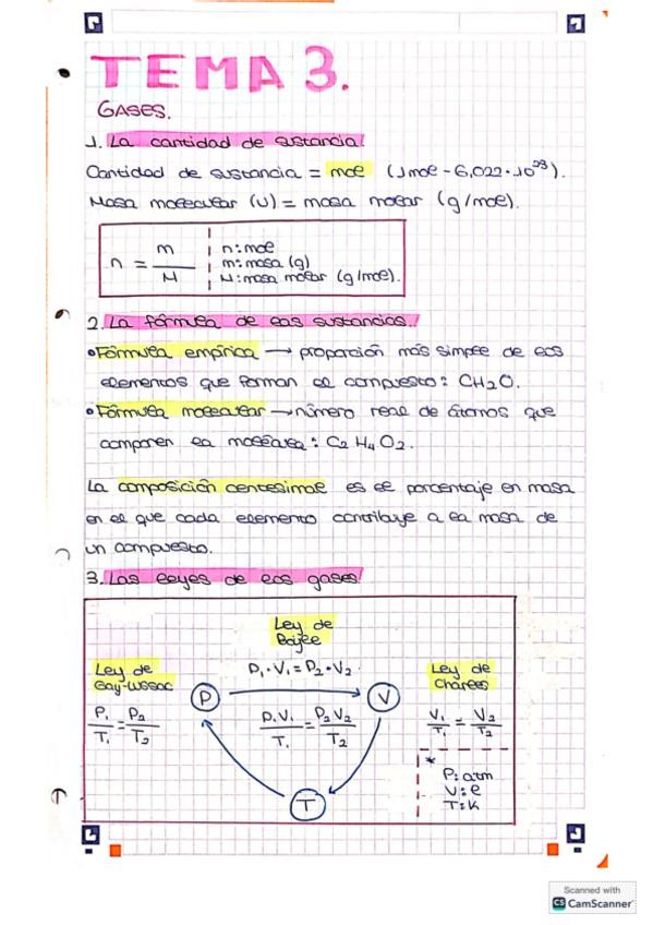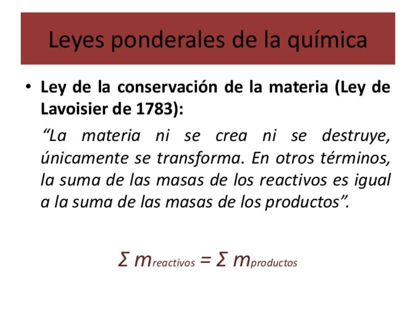 Formulario leyes fundamentales de la química. Física y química 1º Bachillerato