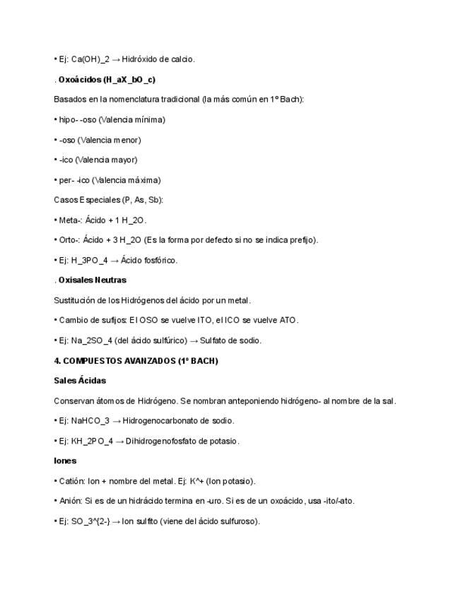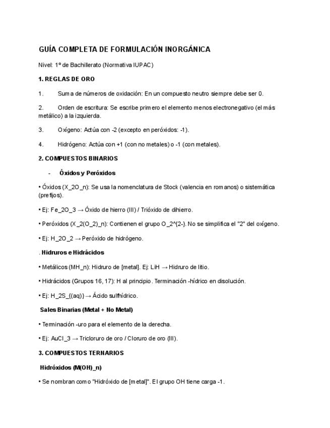 Resumen formulación inorgánica. Física y química 1º Bachillerato