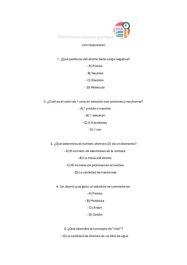 Simulacro test parcial 1 químicaa Veterinaria UAX