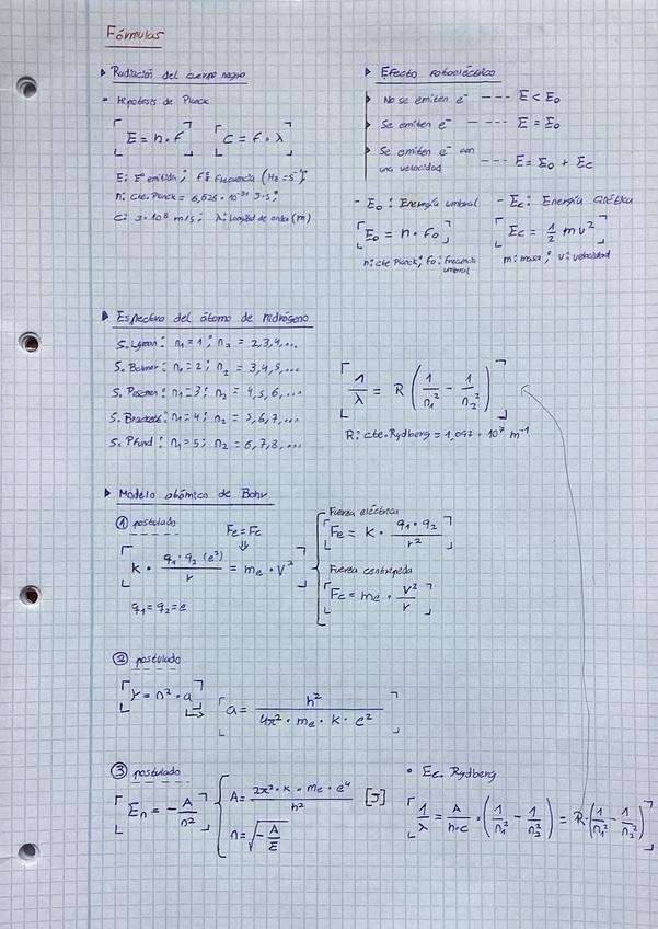 Apuntes: Estructura de la materia (química de 1º de bachillerato) - Modelos atómicos - Radiación y espectro electromagnético - Espectros atómicos - Efecto fotoeléctrico - Modelo de Bohr - Principios básicos de la mecánica cuántica