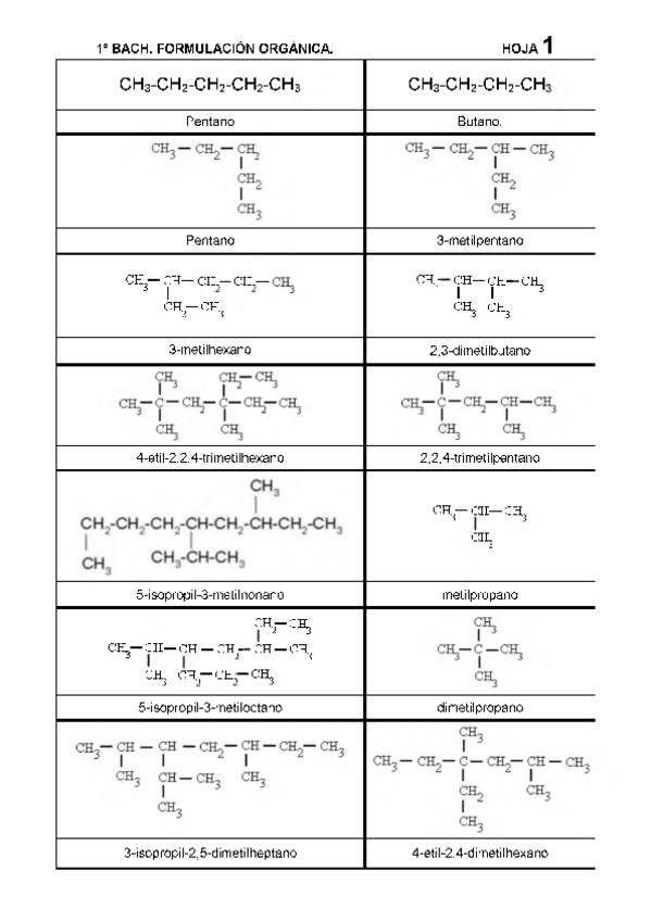 Ejercicios de orgánica con soluciones 1º BACH