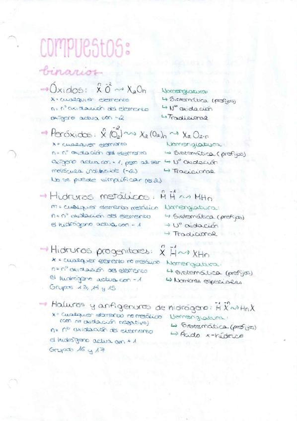 GUIA DEFINITIVA PARA EXAMEN (Estructura de compuesto y sus posibles nombres) Compuestos: I. Binarios: Óxido, Peróxido, Hidruro metálico, Hidruro progenitor, Haluros y anfingeuros de hidrógeno y Sales binarias II. Ternarios: Hidróxidos, Ácidos oxoácidos y