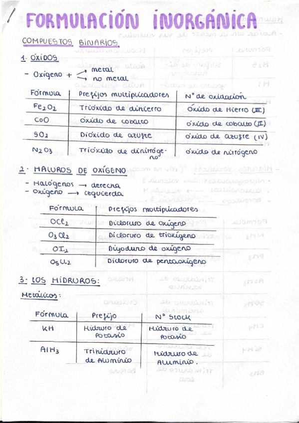 Resumen formulación inorgánica. Física y química 1º Bachillerato