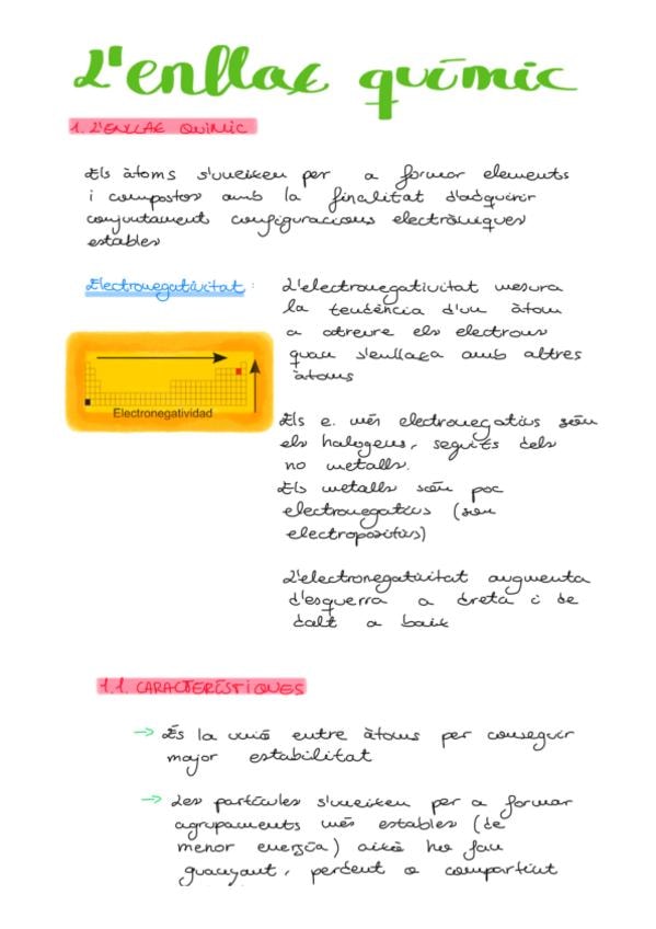 Inclou: explicació enllaç químic, electronegativitat, característiques, teoría de Lewis, tipus d'enllaços, enllaç iònic, enllaç covalent (senzill, doble i triple), enllaç metàl·lic, tipus de substàncies, compostos iònics, molècules i cristalls covalents (
