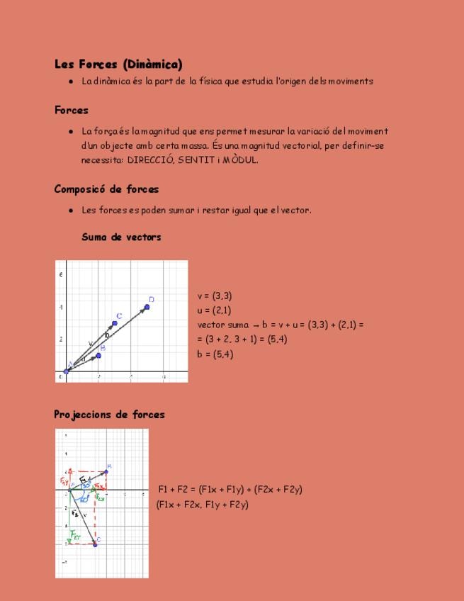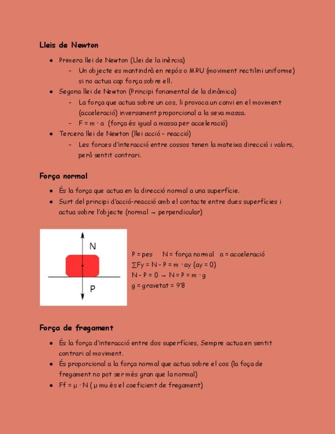 Resumen del tema 3 de Fisica i Química, contiene: forçes, teorema de pitàgores, sinus, cosinus i tangent, lleis de Newton, força nomal i força de fregament.