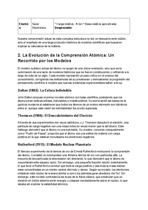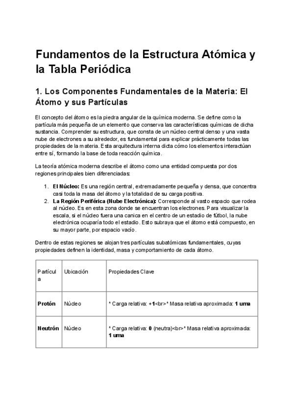 El átomo. Incluye leyes ponderales, teoría atómica de Dalton, modelos atómicos (Thomson, Rutherford y Bohr), partículas subatómicas, isótopos, iones y tabla periódica. Explicado de forma clara y ordenada, ideal para estudiar y preparar exámenes.