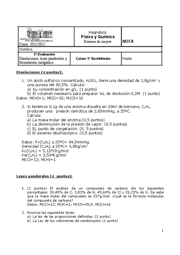 Examen Reacciones químicas