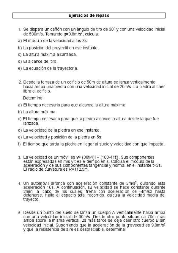 Ejercicios cinemática