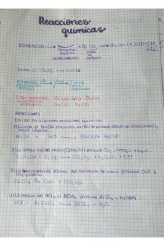 Apuntes sobre las reacciones químicas, cantidad de sustancia, volumen molar, moles, cambios químicos y físicos