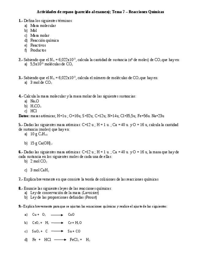 He publicado nuevos ejercicios de 4º Física y Química: ESTEQUIOMETRIA-ACTIVIDADES.pdf