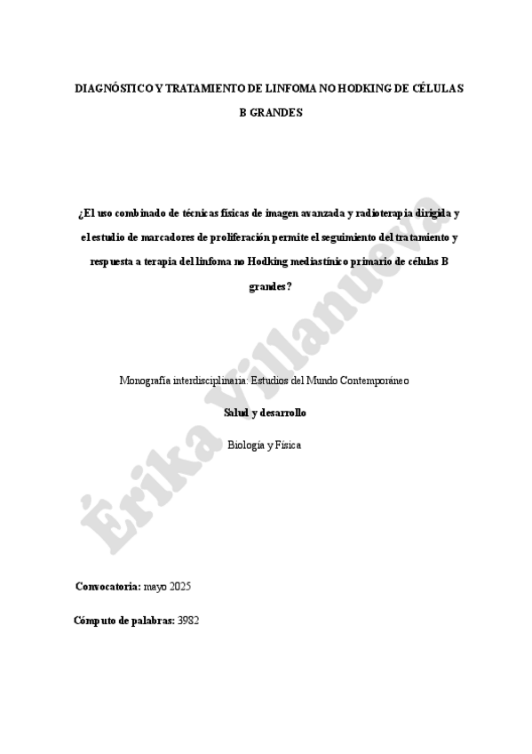Monografía / Extended Essay del IB, interdisciplinaria, salud y desarrollo de biología y de física, fue calificada con una A (máxima puntuación)