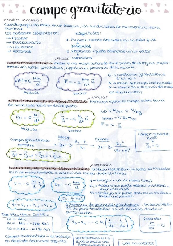 Campo Gravitatorio 2ºBACH/PAU [Todo lo necesario sobre la unidad de campo gravitatorio par el examen de la PAU]. Apuntes con los que saque 9,5 en la PAU 2024/25.