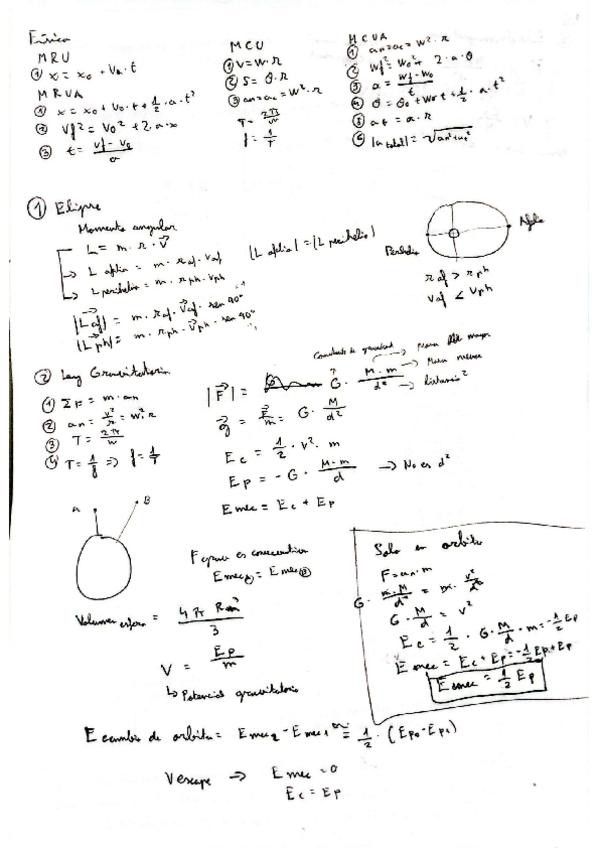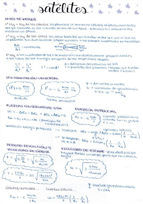 Apuntes claros de las fórmulas de campo gravitario y satélites