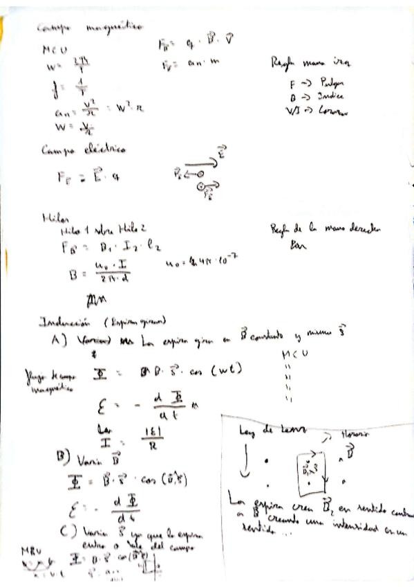 Campo Magnético FISICA- 2ºBACH/PAU. [Ley de Lorentz, Espectógrafo de masas, MCU + Fm, Obtener velocidad a raiz de variación de potencial, Ley de Laplace, Ley Biot-Savart, Fuerza entre hilos paralelos, Ley de Ampere...] Apuntes con los que saque 9,5 en la