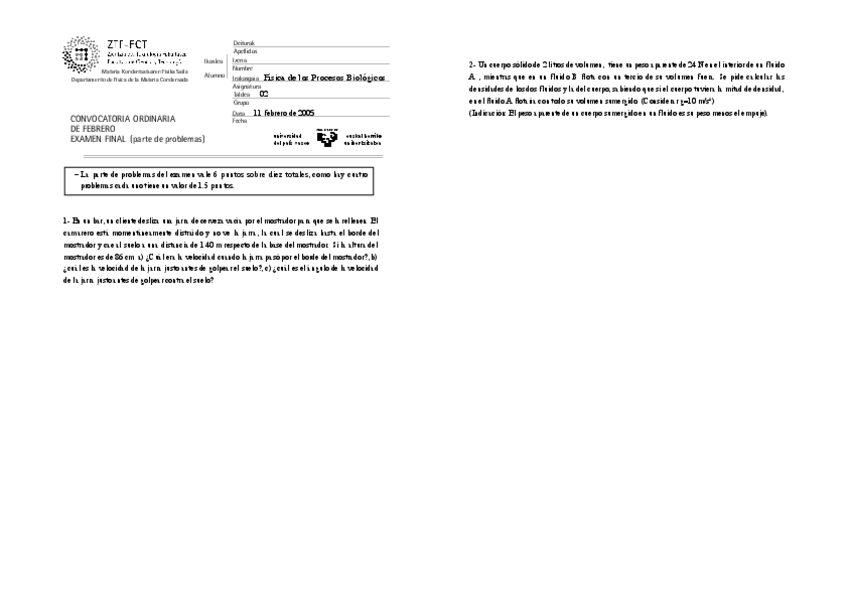 He publicado nuevos examenes de 1º Física: Aurreko urteetako azterketak