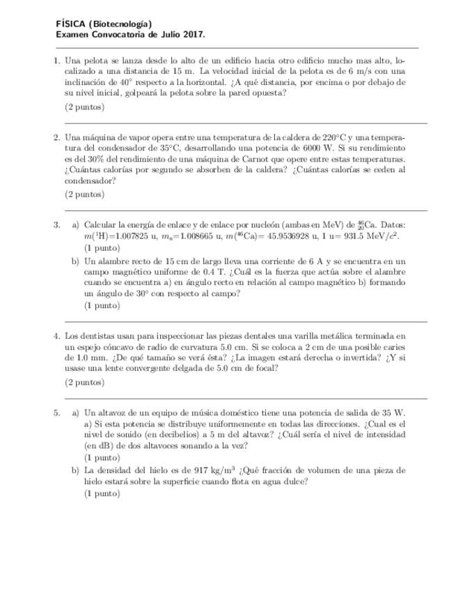 Ejercicios Física (algunos Exámenes)