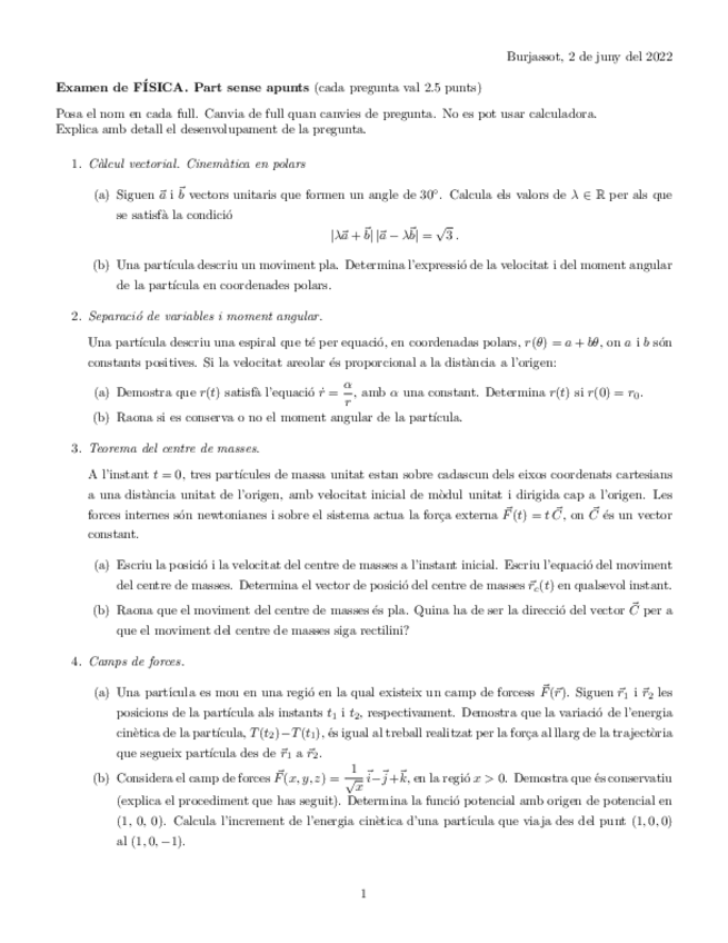 He publicado nuevos apuntes de 1º Física: Examenes Pràctica