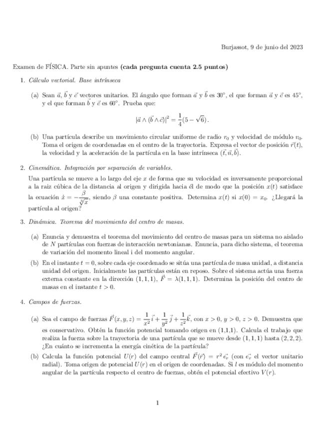 He publicado nuevos apuntes de 1º Física: Examen junio 2023