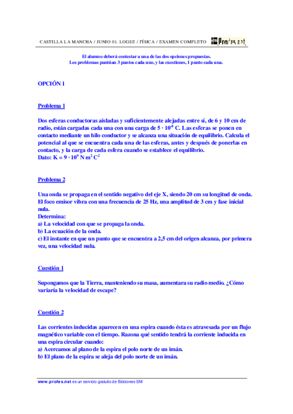 EXAMENES ANTERIORES DE FISICA