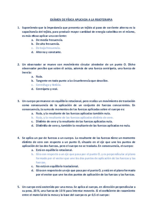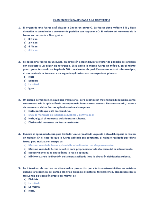 He publicado nuevos examenes de 1º Física: FÍSICA APLICADA A LA FISIOTERAPIA