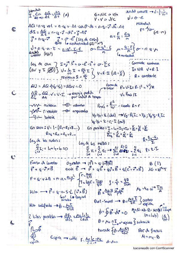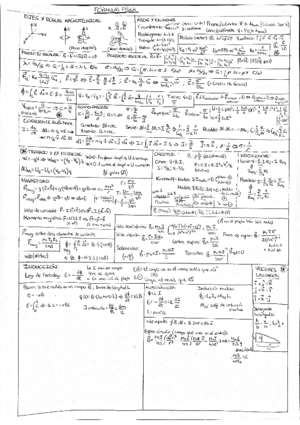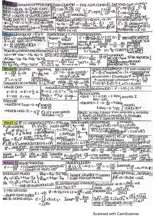 Fórmulas con notaciones de todos los temas de física del primer cuatrimestre