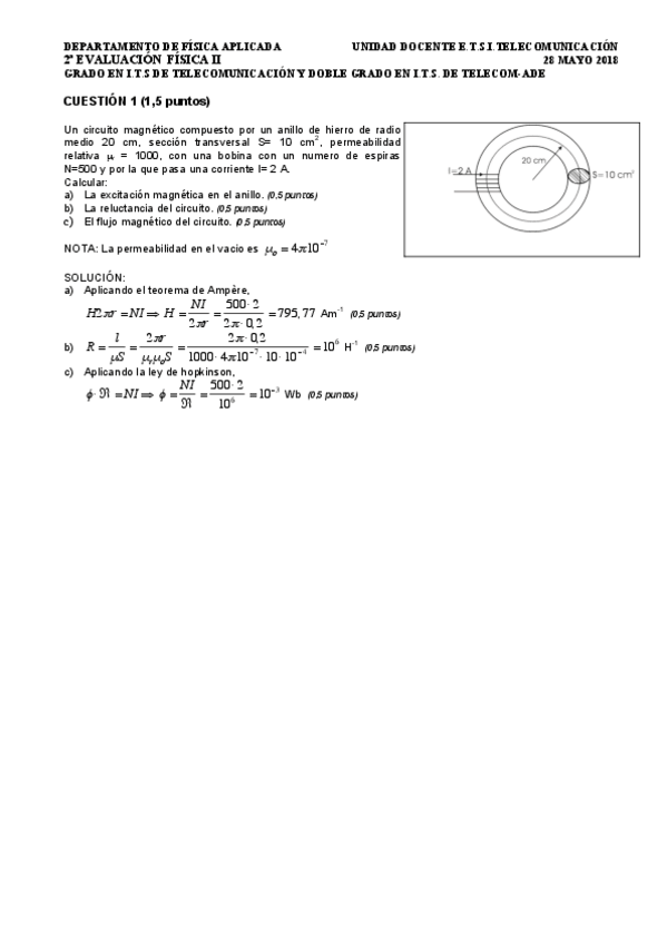 He publicado nuevos examenes de 1º Física: Cuestiones