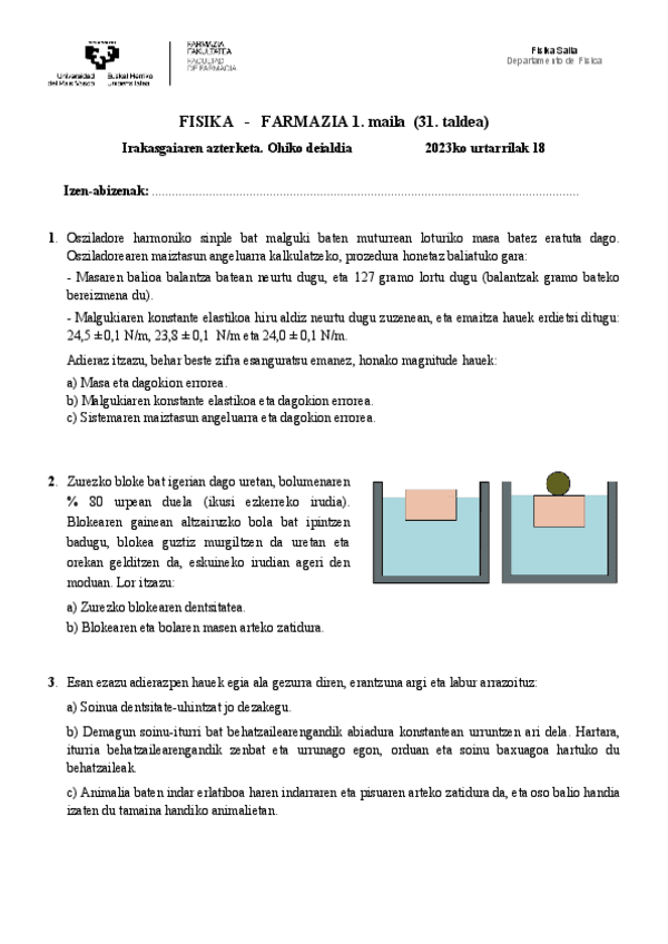 He publicado nuevos examenes de 1º Física: 2023-Ekaina-azterketa.pdf