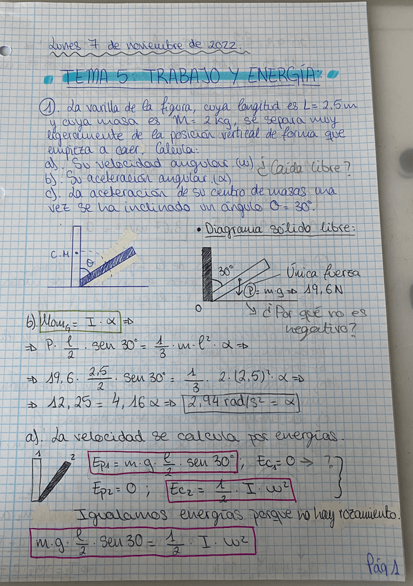 He publicado nuevos ejercicios de 1º Física: Tema 7