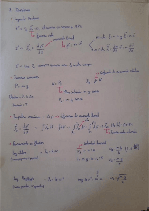 Apuntes con fórmulas y explicaciones. Cinemática, dinámica, Trabajo y energía y Dinámica de fluidos