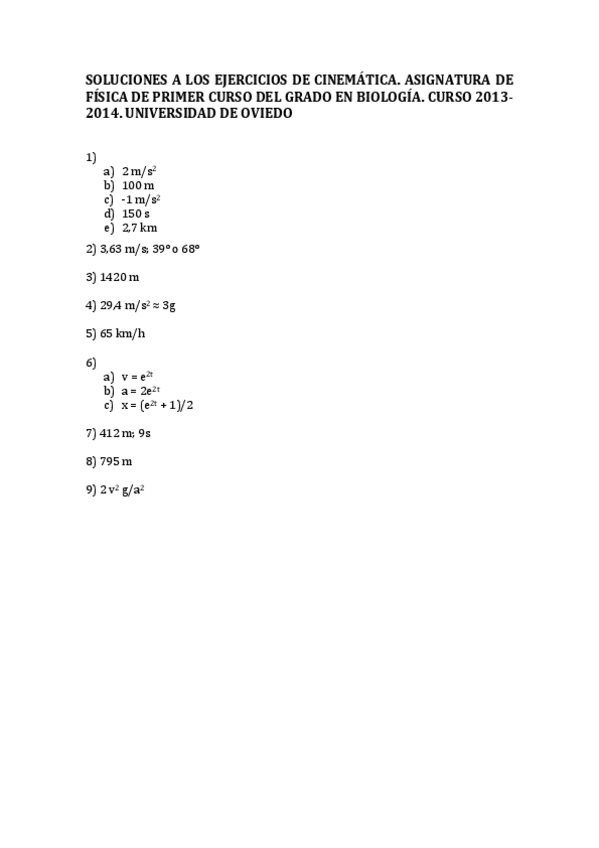 Ejercicios cinemática y soluciones