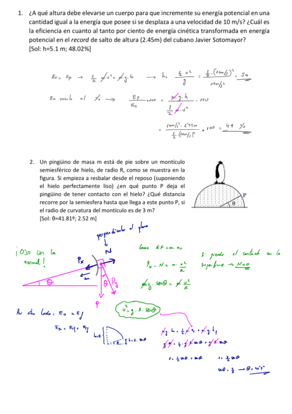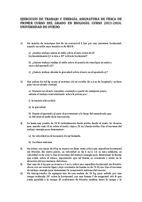 He publicado nuevos ejercicios de 1º Física: Ejercicios trabajo y energía y soluciones