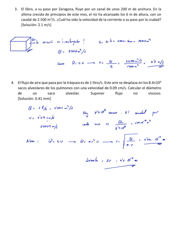Ejercicios fluidos y soluciones