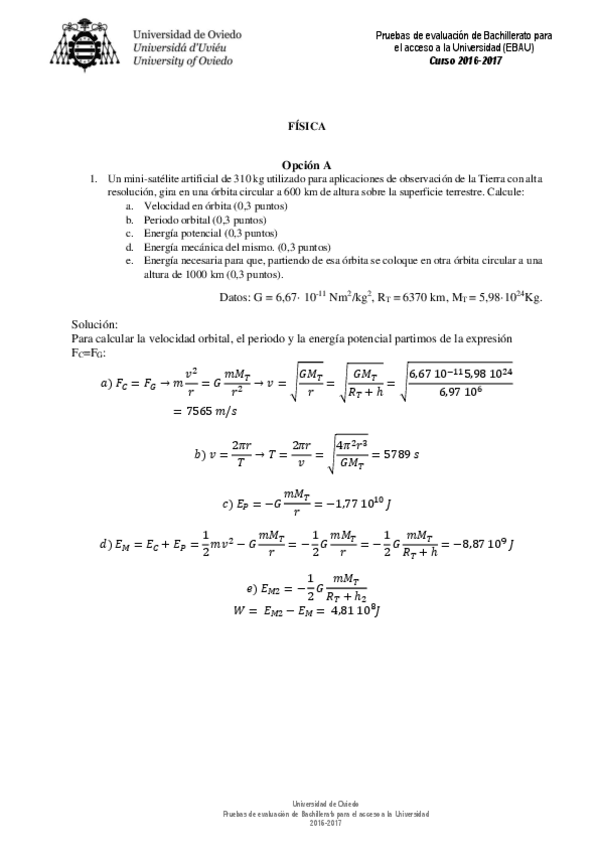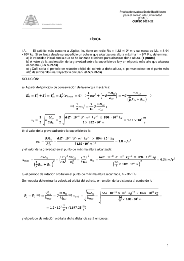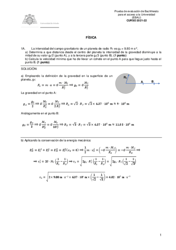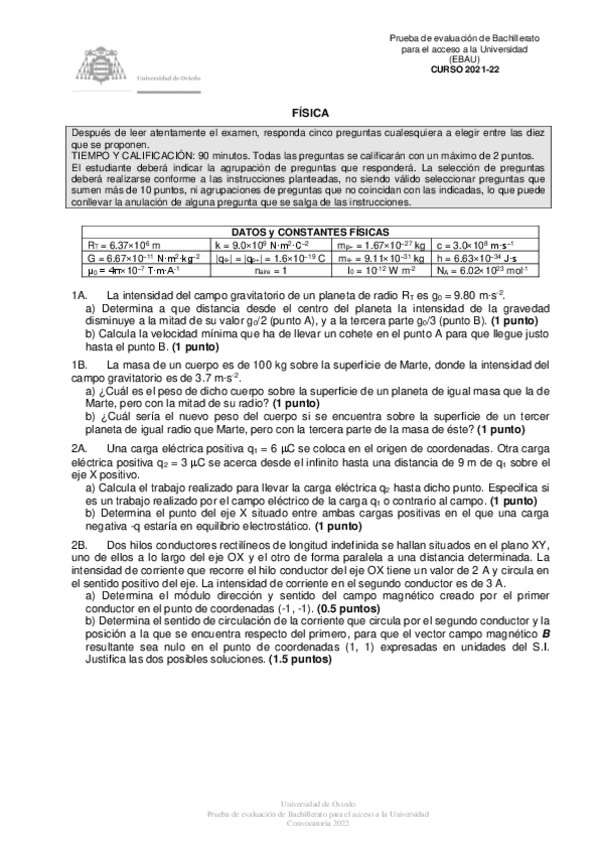 Exámenes y Exámenes Resueltos Física EBAU Asturias 2022