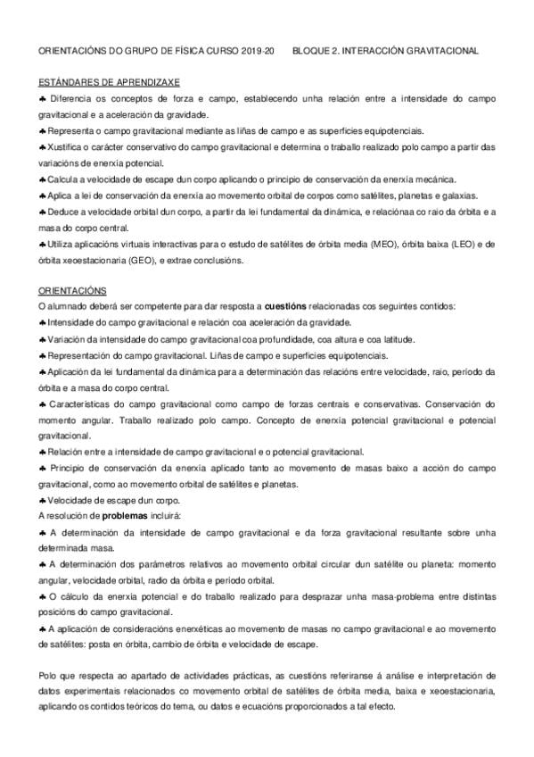 Resumen de una carilla con lo necesario sobre campo gravitatorio 2BACH