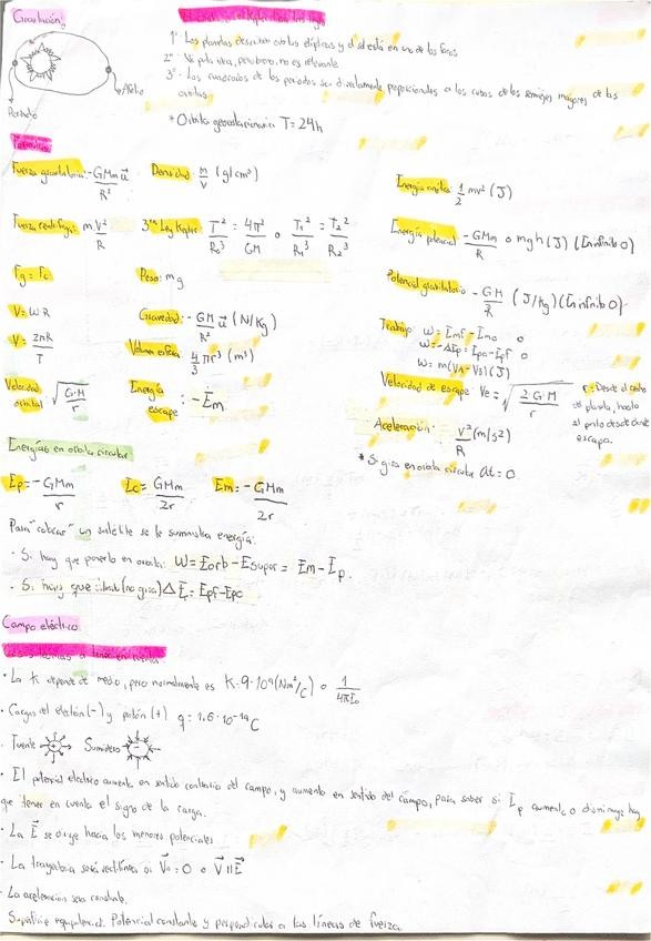 Apuntes resumidos del Bloque 1 de Gravitación para la PAU. Física II, 2º Bachillerato. A por el 10! ;)