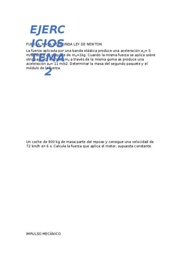 He publicado nuevos ejercicios de 1º Física: Problemas Tema 5 2022