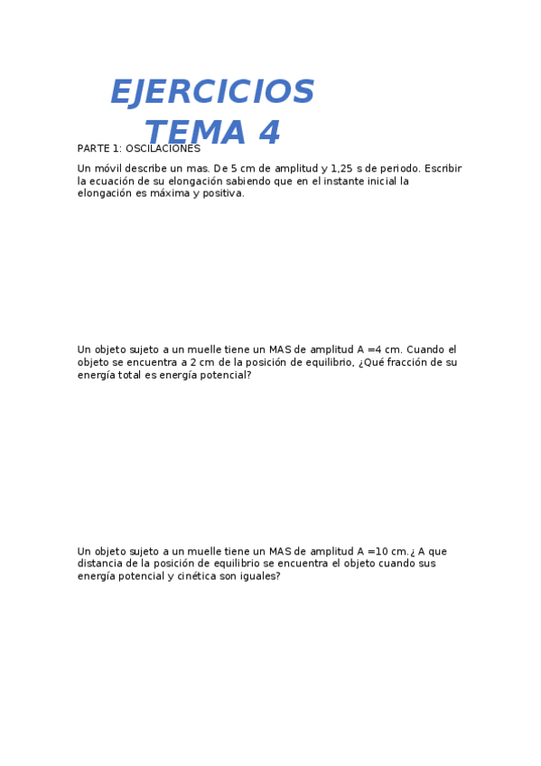 He publicado nuevos ejercicios de 1º Física: Problemas Tema 4 2022