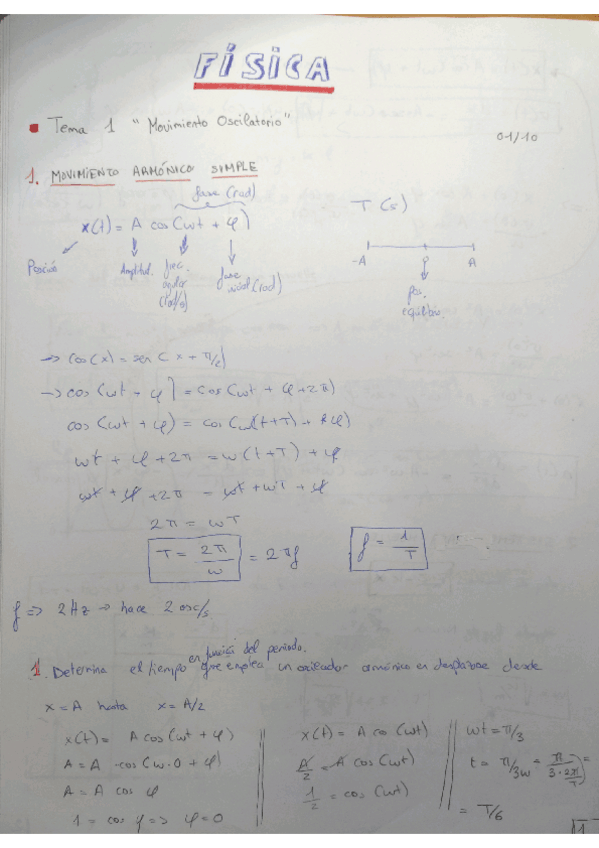 He publicado nuevos apuntes de 1º Física: T.1. Movimiento oscilatorio.