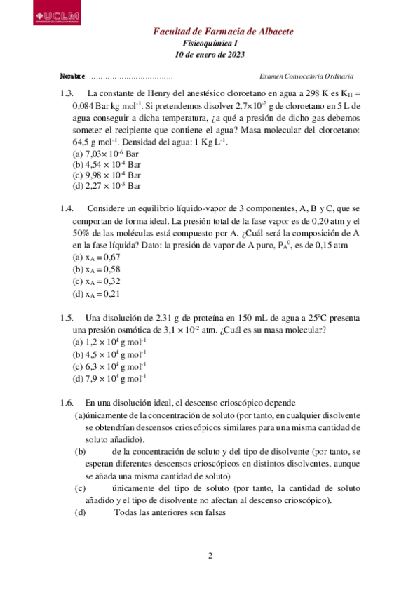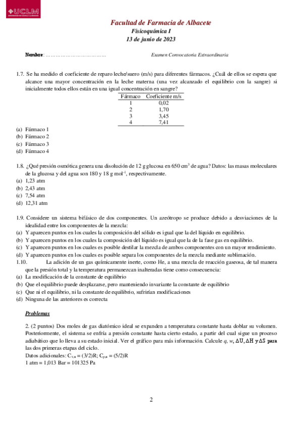 He publicado nuevos examenes de 2º Fisico- Quimica I: Examen-1o-Parcial-20212022.pdf
