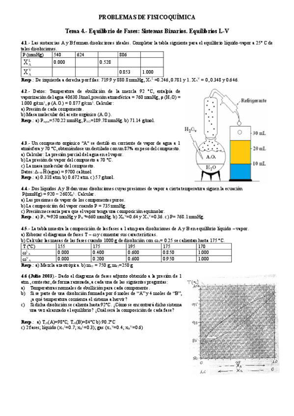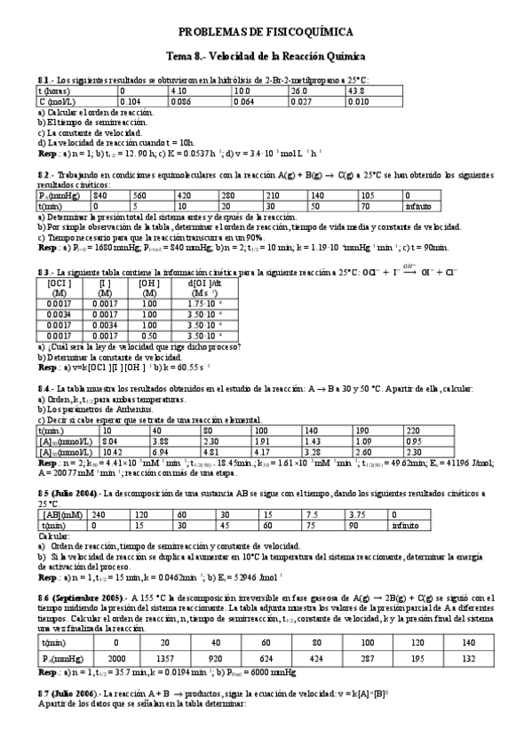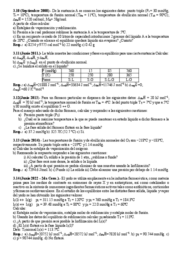 Ejercicios fisicoquímica de todos los temas