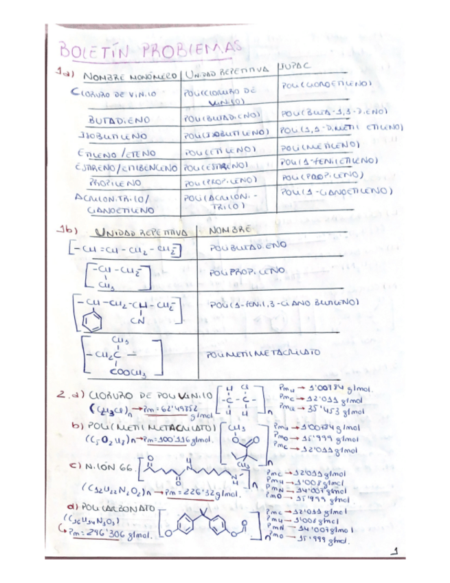 problemas de polímeros del 1 al 24 y ejercicio extra