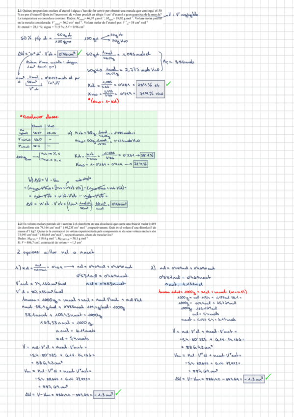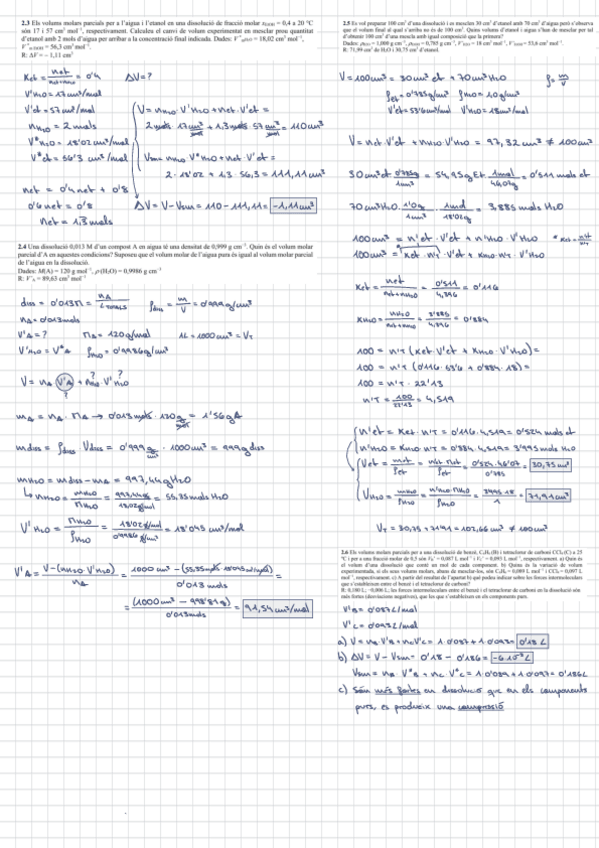 Exercicis magnituds molars parcials, pas a pas, bastant explicats