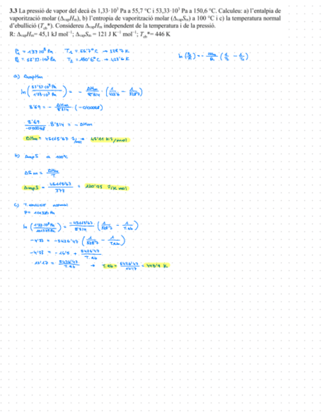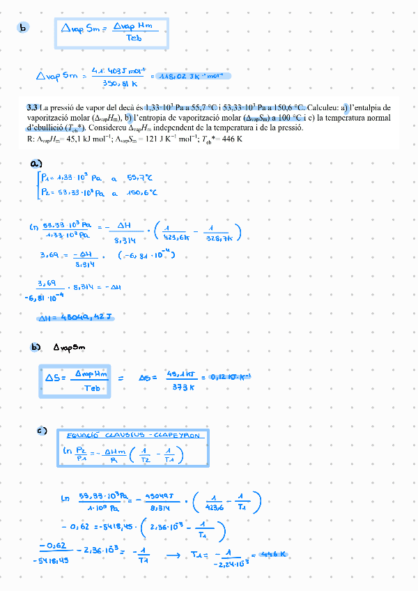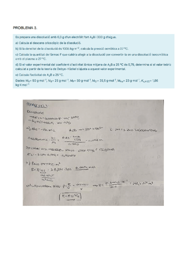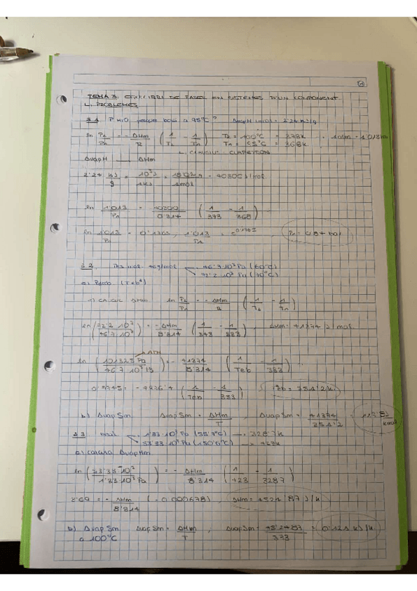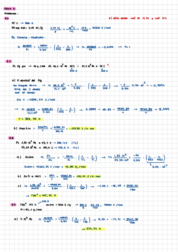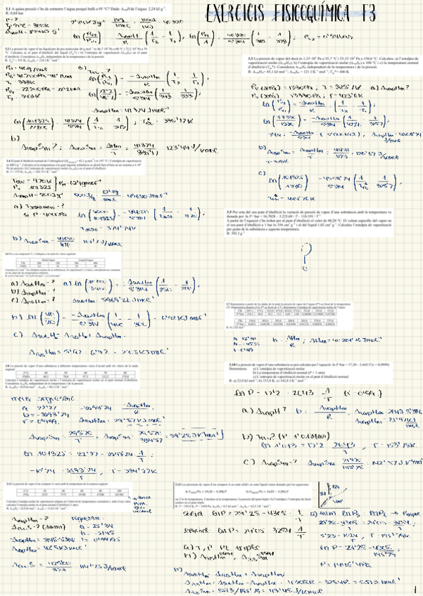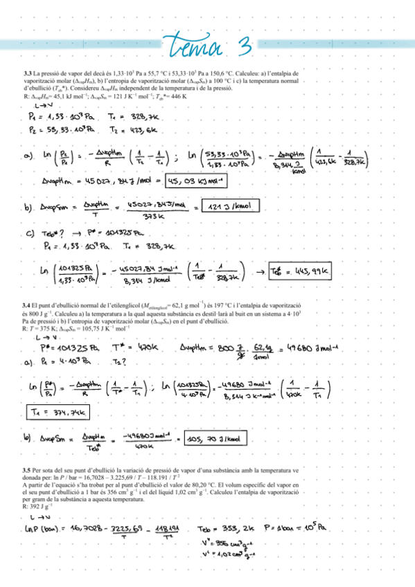 Tots els exercicis (tret d’un) resolts del tema 3 de fisicoquímica