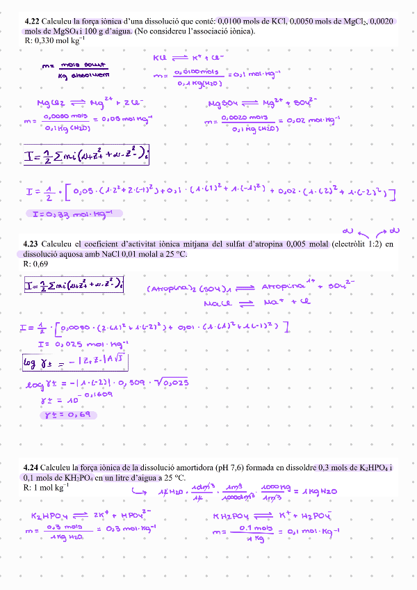 Exercicis ressolts de la part de dissolucions ELECTRLÍTIQUES del tema 4