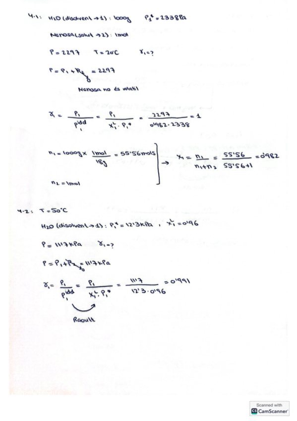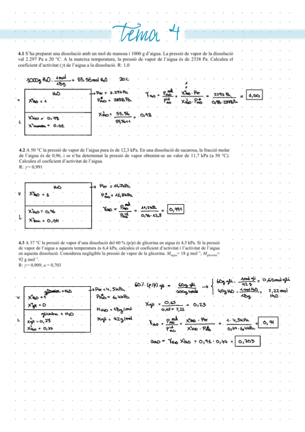 Exercicis ressolts del tema 4 de fisicoquímia de la part de dissolucions no electrolítiques.