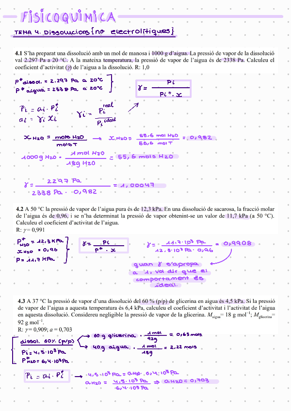 Exercicis ressolts del tema 4 de fisicoquímia de la part de dissolucions no electrolítiques.