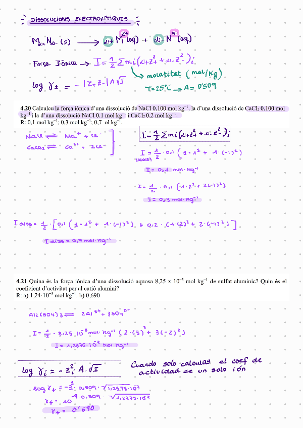 Exercicis ressolts de la part de dissolucions ELECTRLÍTIQUES del tema 4